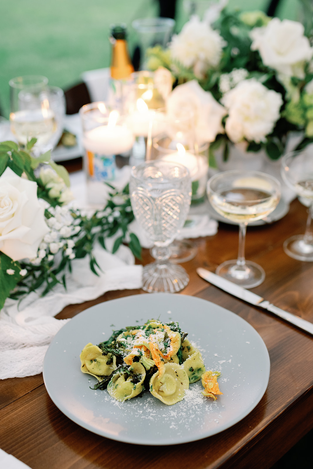 Courses: Would you like to have a first course or have all the food served at once? Would you like your meal to be served as a buffet, family style, or would you like each meal to be individually plated?